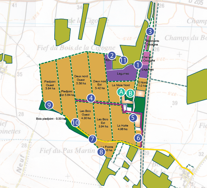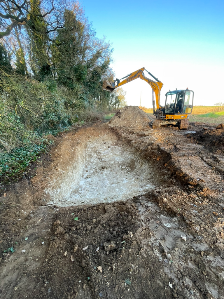 Ainsi, la première moitié des 20 mares est mise en place sur le site du Mont d’Or à proximité des deux points d’eau (A & B) déjà existants sur la ferme. Les 10 prochaines mares seront majoritairement réparties sur l’ensemble des parcelles à l’extérieur de l’ilot principal.