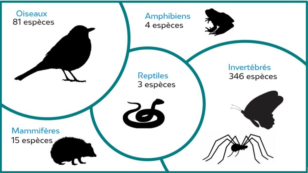 La synthèse des données naturalistes et les inventaires ont permis d’avoir une première liste de 449 espèces présentes sur les parcelles et la périphérie proche de La Ferme du Mont d’Or. Nous remercions l’ensemble des bénévoles qui ont participé aux prospections en 2025.